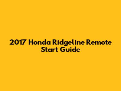 2017 Honda Ridgeline Remote Start Guide