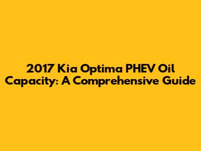 Hey there, car enthusiasts! If you're here, chances are you're curious about the 2017 Kia Optima PHEV oil capacity. Maintaining the correct oil level is super important for your car's engine to run smoothly and last longer. This guide will break down everything you need to know about the oil capacity of your 2017 Kia Optima Plug-in Hybrid Electric Vehicle (PHEV), why it matters, and some related tips to keep your ride in tip-top shape. Let's dive in, shall we?