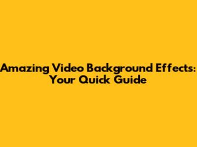 Amazing Video Background Effects: Your Quick Guide