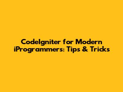 CodeIgniter For Modern IProgrammers: Tips & Tricks