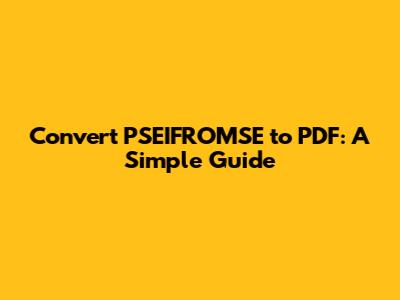 Convert PSEIFROMSE To PDF: A Simple Guide