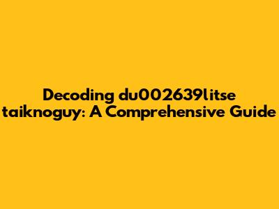 To really dissect du002639litse taiknoguy, we need to analyze its individual components. Breaking down the identifier into smaller parts can reveal hidden meanings and patterns. Let's start by examining the numeric part: "du002639". Numbers in identifiers often represent timestamps, version numbers, or sequential IDs. For example, "2639" might refer to the 2639th entry in a database, or it could be part of a larger date code. The "du00" prefix is more intriguing. It could denote a department, a category, or some other classification.