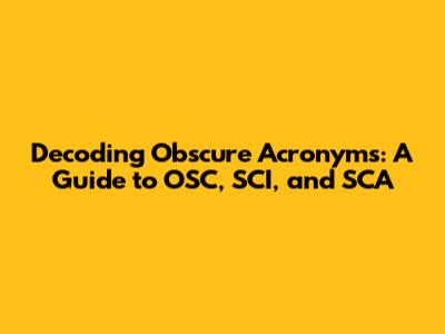 Decoding Obscure Acronyms: A Guide To OSC, SCI, And SCA