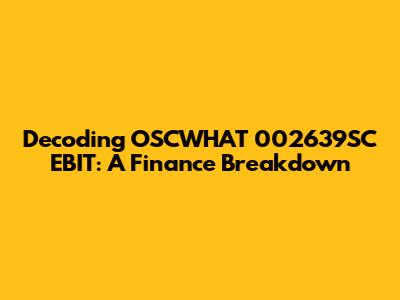 Decoding OSCWHAT 002639SC EBIT: A Finance Breakdown