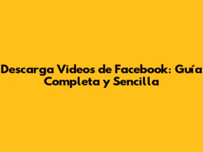 Descarga Videos De Facebook Fácil: Guía Paso A Paso