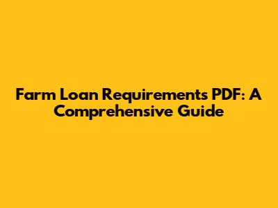 Farm Loan Requirements PDF: A Comprehensive Guide