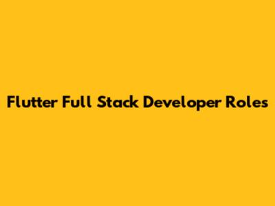 Flutter Full Stack Developer Roles