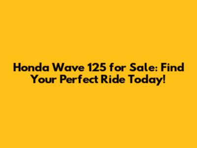 Honda Wave 125 For Sale: Find Your Perfect Ride Today!