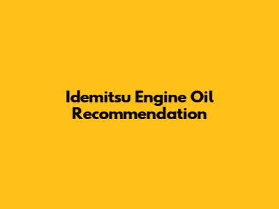 Idemitsu Engine Oil Recommendations