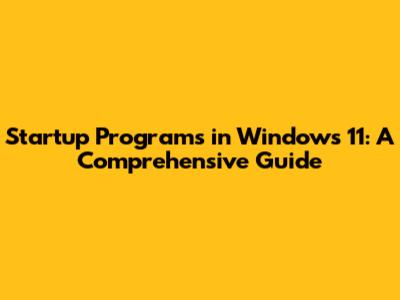 Manage Startup Programs In Windows 11: A Comprehensive Guide