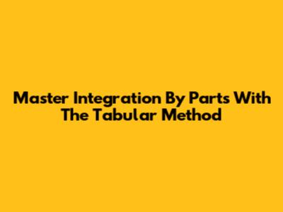 Master Integration By Parts With The Tabular Method