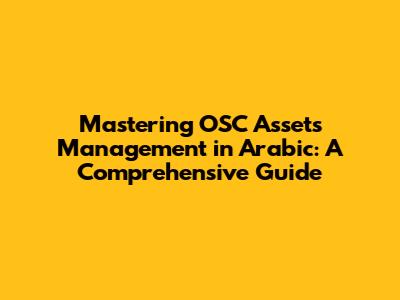 Mastering OSC Assets Management In Arabic: A Comprehensive Guide