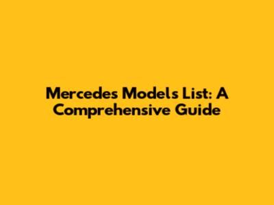 Mercedes Models List: A Comprehensive Guide