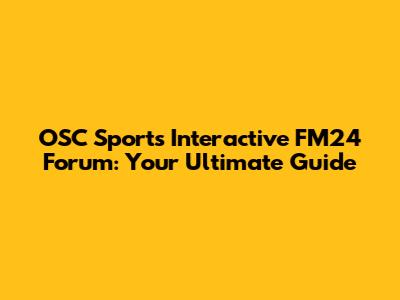 OSC Sports Interactive FM24 Forum: Your Ultimate Guide