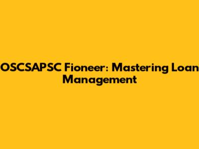 OSCSAPSC Fioneer: Mastering Loan Management