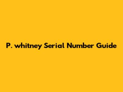 P. Whitney Serial Number Guide