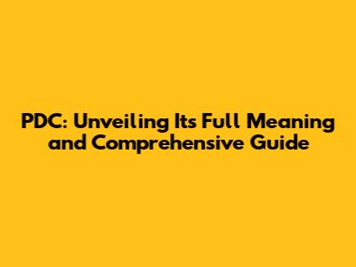 PDC: Unveiling Its Full Meaning And Comprehensive Guide