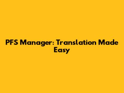 PFS Manager: Translation Made Easy
