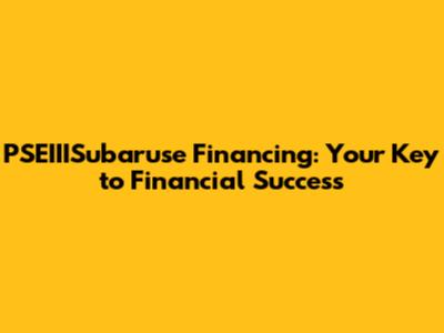 PSEIIISubaruse Financing: Your Key To Financial Success