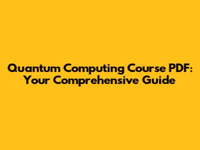 Quantum Computing Course PDF: Your Comprehensive Guide