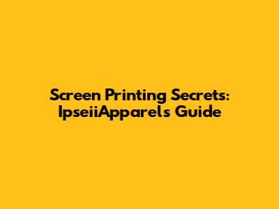 Screen Printing Secrets: IpseiiApparel's Guide
