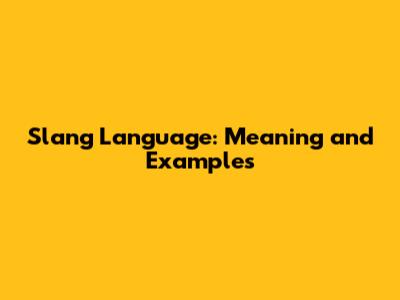 Slang Language: Meaning And Examples