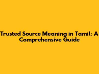 Trusted Source Explained: Meaning In Tamil And Its Importance