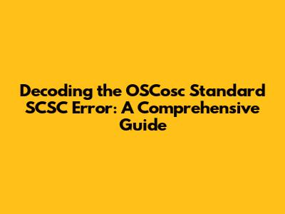 Understanding And Fixing OSCosc Standard SCSC Errors