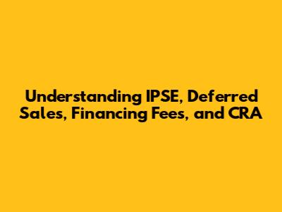 Understanding IPSE, Deferred Sales, Financing Fees, And CRA