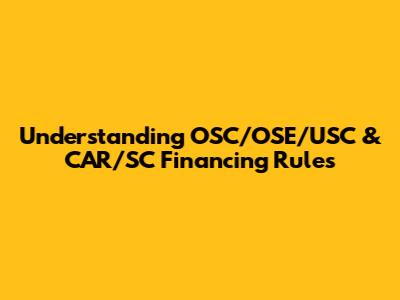 Understanding OSC/OSE/USC & CAR/SC Financing Rules