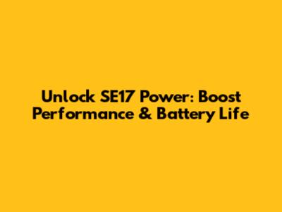 Unlock SE17 Power: Boost Performance & Battery Life